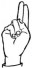 На ћирилици написано ЈЕЛИСАВ ДАНГУБИЋ састоји се из 15 слова [?]. Исписано ћириличном једноручном азбуком за глувонеме: